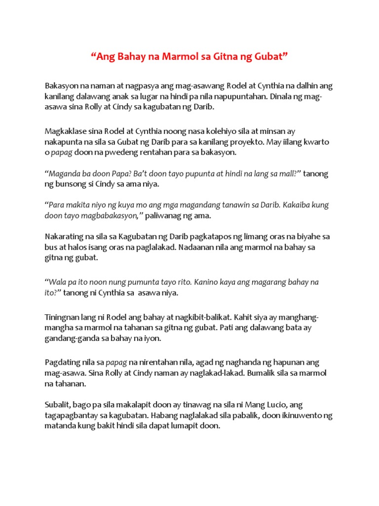 THE KING AND HIS 4 WIVES STORY. Fm Sa gitna ng kagubatan may ahas na hahalik Tatawagin kang kaibigan na pinamatalik Pupulupot sa leeg mot sipsip ng iyong dugo Fm Ipapako ka sa krus pag ikay natuyo Pre-Chorus. Ang Bahay na Marmol sa Gitna ng Gubat Bakasyon na naman at nagpasya ang mag-asawang Rodel at Cynthia na dalhin ang kanilang dalawang anak sa lugar na hindi pa nila napupuntahan.