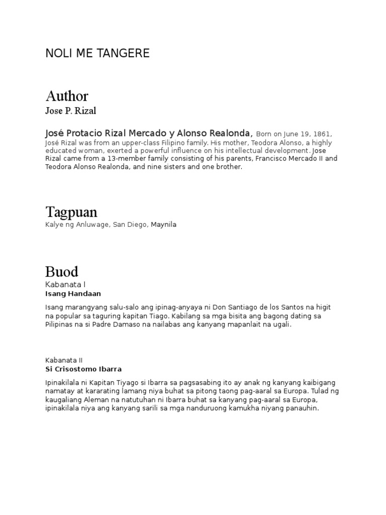 Ang Noli Me Tangere ay salitang Latin na ang ibig sabihin sa wikang Inges ay Touch Me Not o Huwag Mo Akong Salingin sa Filipino. 2 question Simula gitna at wakas ng kabanata 27 ng noli me tangere. Noli Me Tangere Script Tagalog Classics.