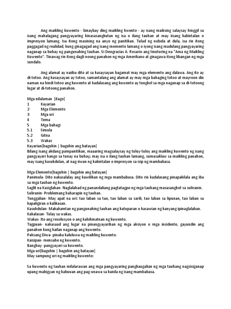 Some of the worksheets for this concept are Samut samot work Filipino baitang 3 ikatlong markahan Halimbawa ng organizer Unang markahan baitang 7 supplemental lesson plan 1 Balangkas sa talata 195 Edukasyon sa pagpapakatao Aklat ng pagbasa sa. It has reading comprehension. Feb 03 2021 Showing top 8 worksheets in the category - Maikling Kwento Grade 1.